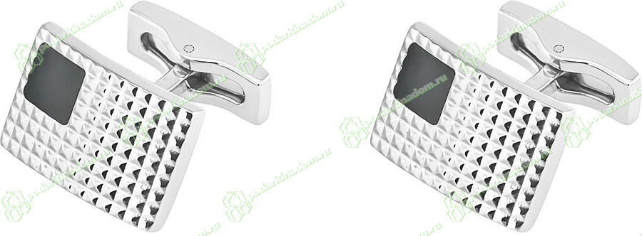 Прямоугольные запонки с черной лакированной вставкой в виде небольшого квадрата.