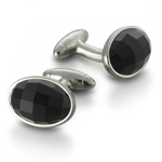 Мужские запонки от компании Dalvey серия Юпитер выполненные в стальном цвете со вставкой из черного агата