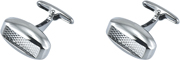 Элегантные запонки серебряного цвета, украшены мелкой насечкой в центральной части.