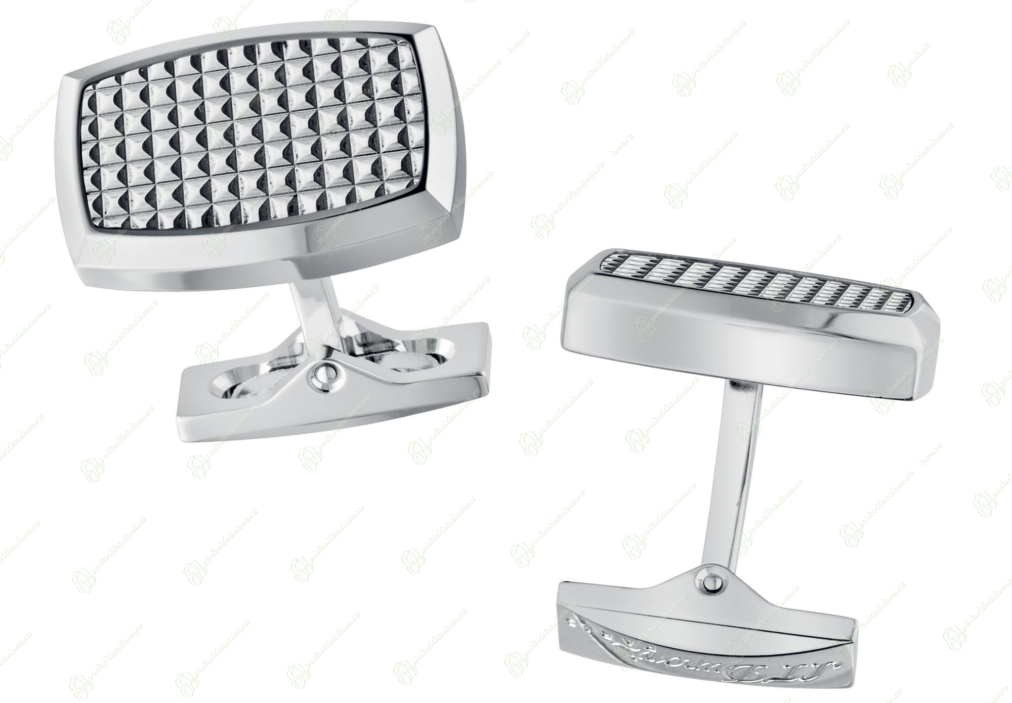 Запонки, прямоугольные, узор "бриллиантовое гильоше", палладиевая отделка
