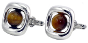 Квадратные запонки с круглой вставкой из тигрового глаза