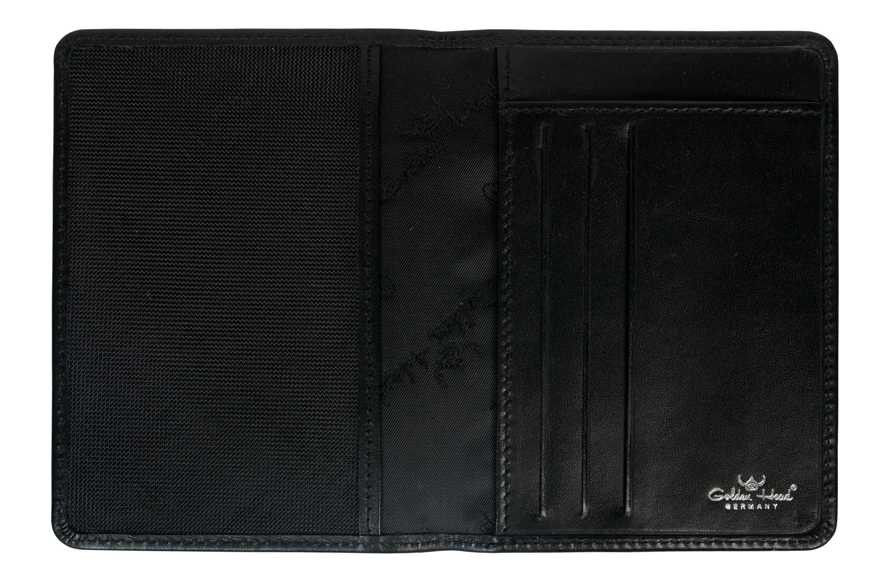 Обложка для документов выполнена из натуральной кожи черного цвета.