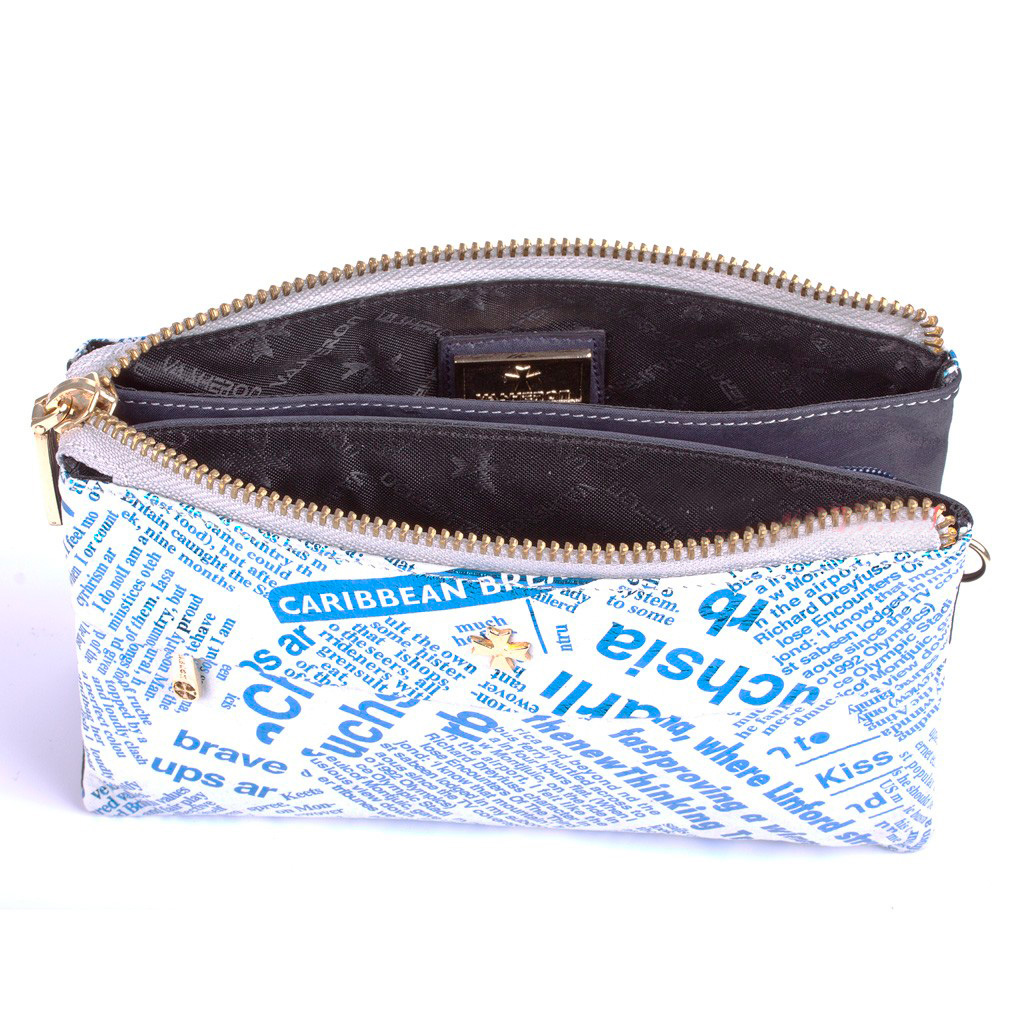 Внутри два больших отделения, посередине отделение на молнии. Снаружи карман на молнии. В комплекте пристегивающийся ремешок на корабине.