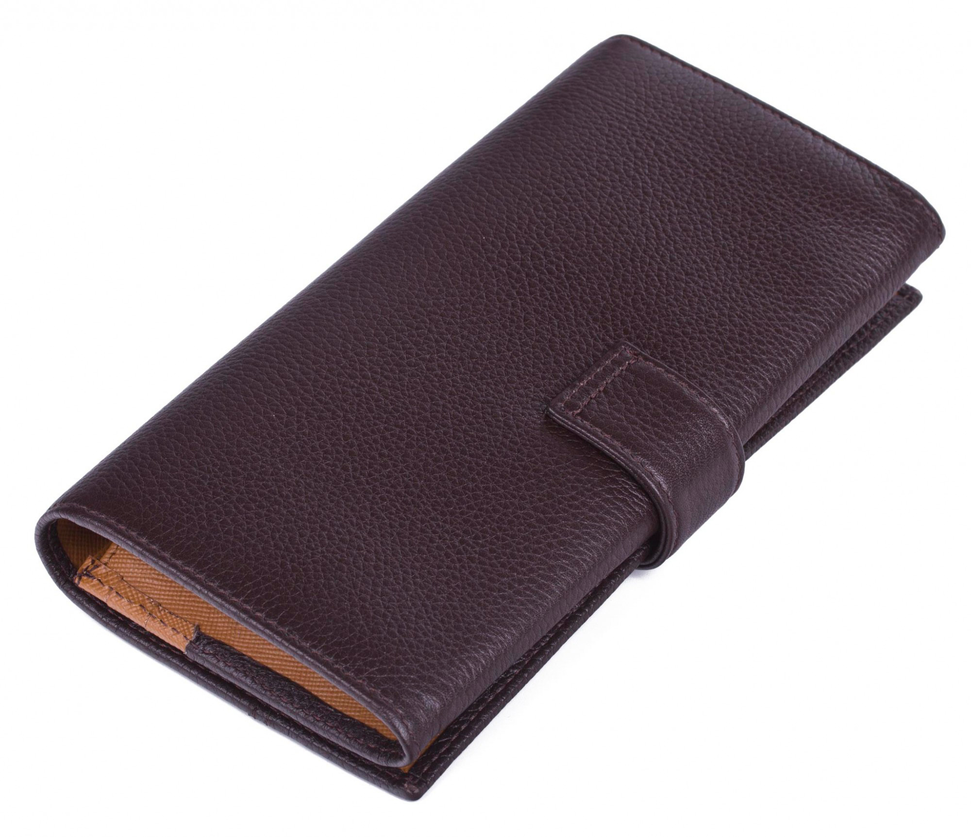 Женский кожаный кошелек выполнен из натуральной кожи Внутри: 2 отделения для купюр, отделение на молнии, 9 отделений для визитных и кредитных карт, карман-сеточка, дополнительное отделение.