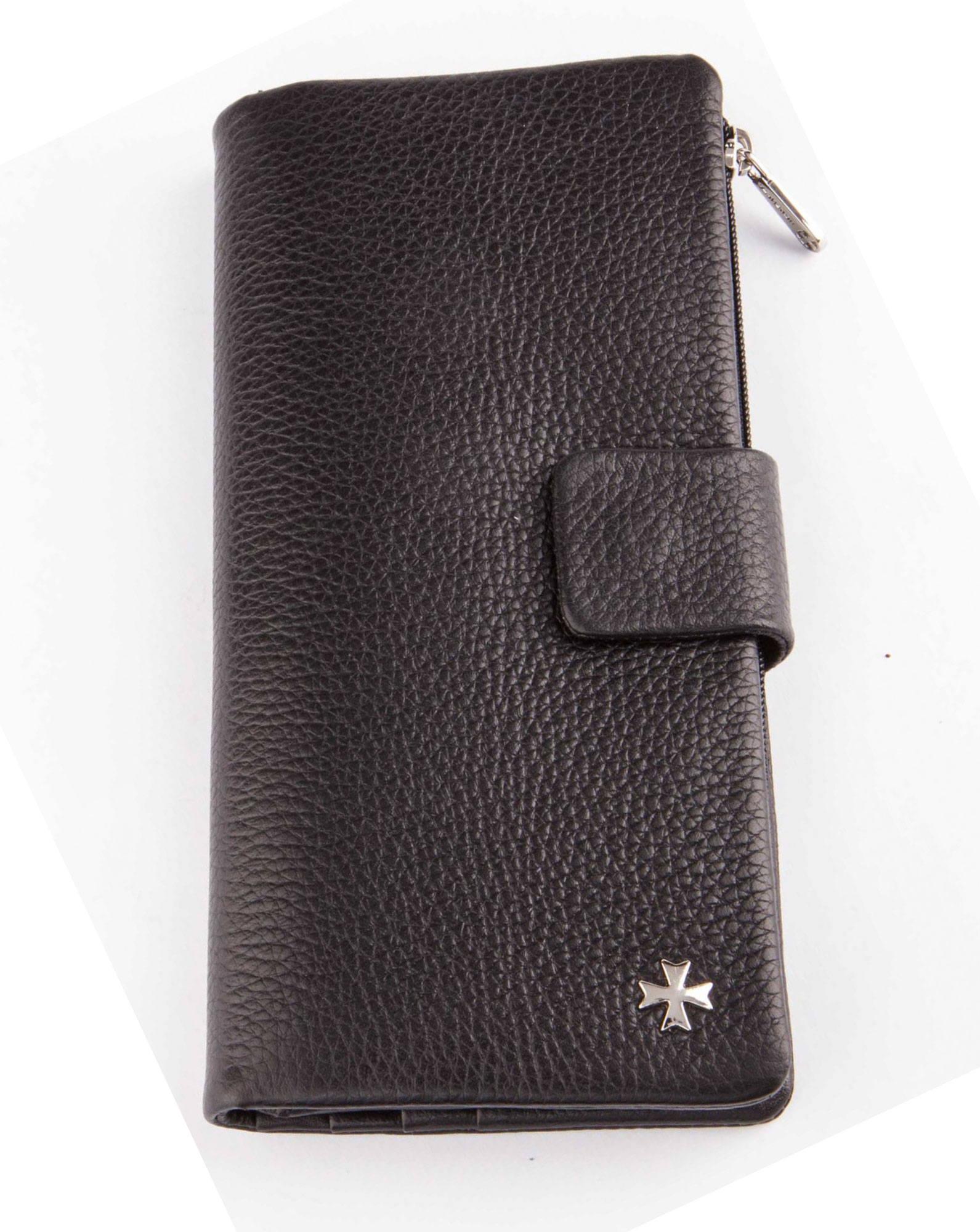 Портмоне из натуральной телячьей кожи, закрывается хлястиком на кнопке.