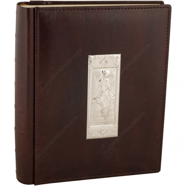 Фотоальбом с художественной вставкой "Девушка у рояля", выполненный из натуральной кожи.