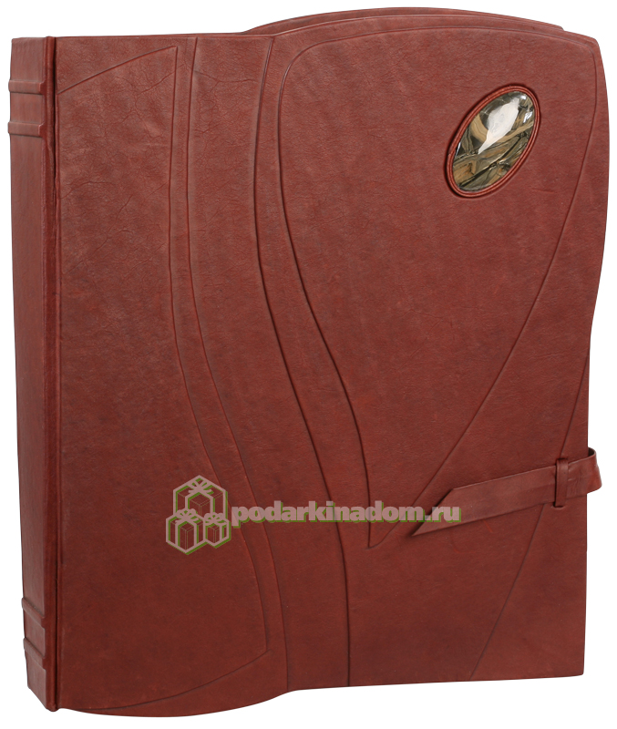 Альбом для фотографий с магнитными листами, обложка фотоальбома выполнена вручную из натуральной кожи с художественной вставкой.