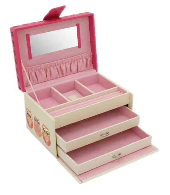 Оригинальная шкатулка для хранения украшений из коллекции Owlivia от немецкой фабрики Friedrich Lederwaren. Шкатулка изготовлена из экокожи бежево-розового цвета с принтом "совята". Внутренняя отделка из велюра светло-розового цвета.