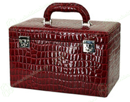 Вместительная шкатулка для хранения драгоценностей светло-коричневого цвета. Множество разнообразных отделений. Отдельный ящик с подушечкой для хранения часов. Поставляется с платком для чистки ювелирных изделий. Тиснение под кожу крокодила.