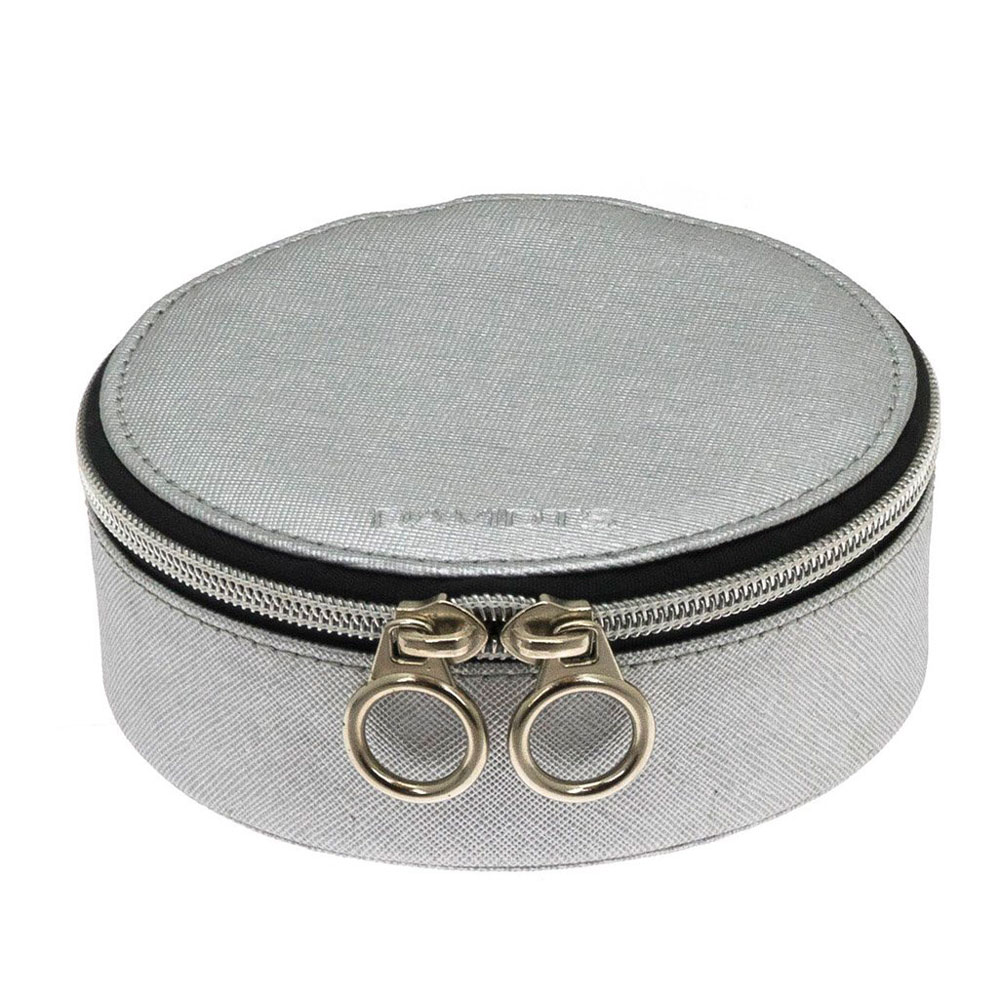 Изготовлена из экокожи с линейной фактурой. Внутренняя отделка завершена велюром светло-серого цвета. Футляр состоит из четырех универсальных отделений и одного отделения с ювелирными валиками для хранения колец. Удобное откидное зеркало. Закрывается на молнию.