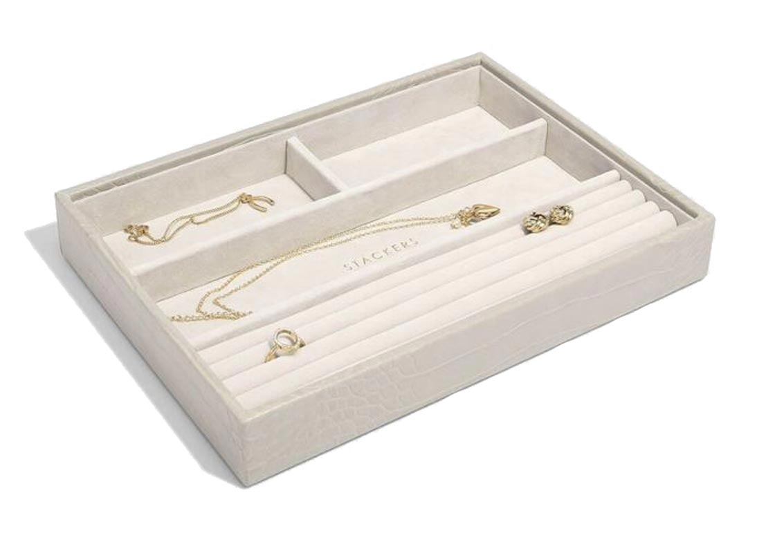 Отделан высококачественной экокожей серо-коричневого цвета с фактурой "крокодил". Внутренняя отделка выполнена из вельвета серого цвета.