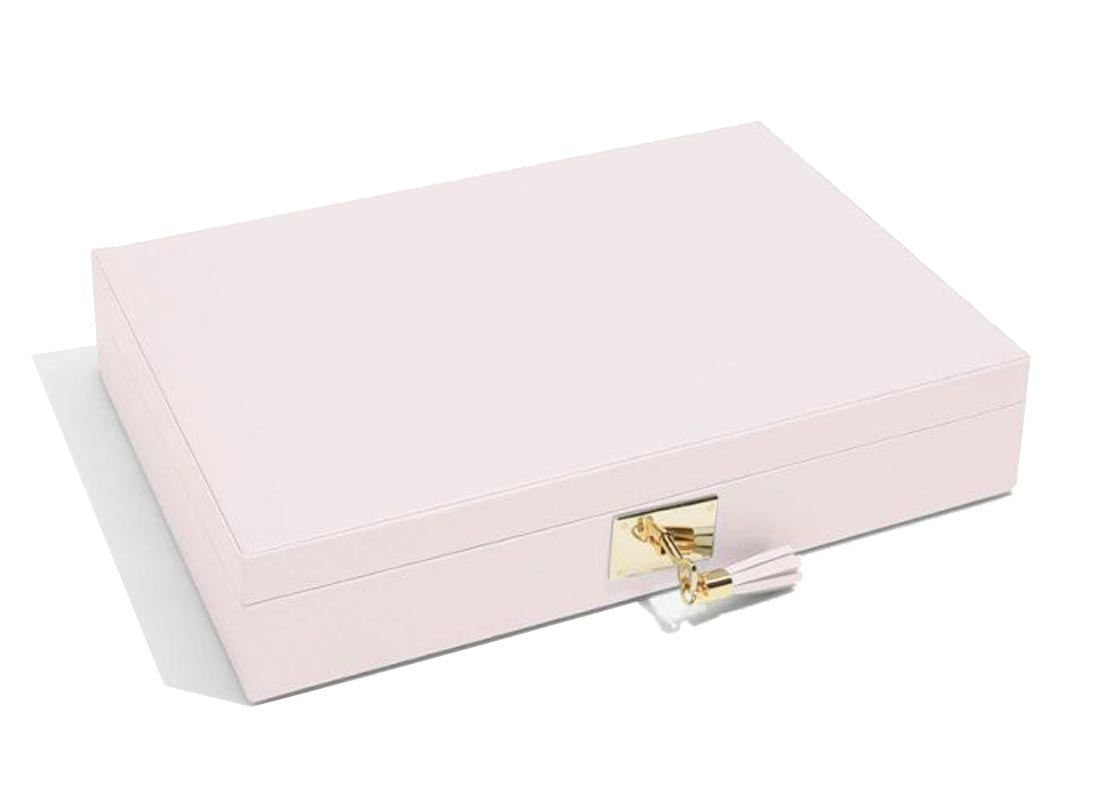 Выполнена из качественной натуральной кожи бледно-розового цвета.Внутри вельвет светло-серого цвета.