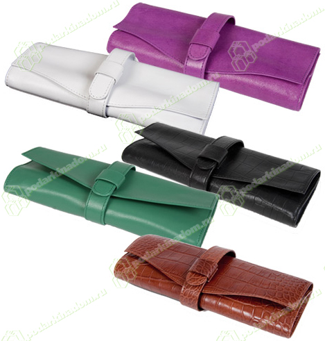 Дорожный футляр для украшений с 4 отделениями на молнии и валиком для колец.