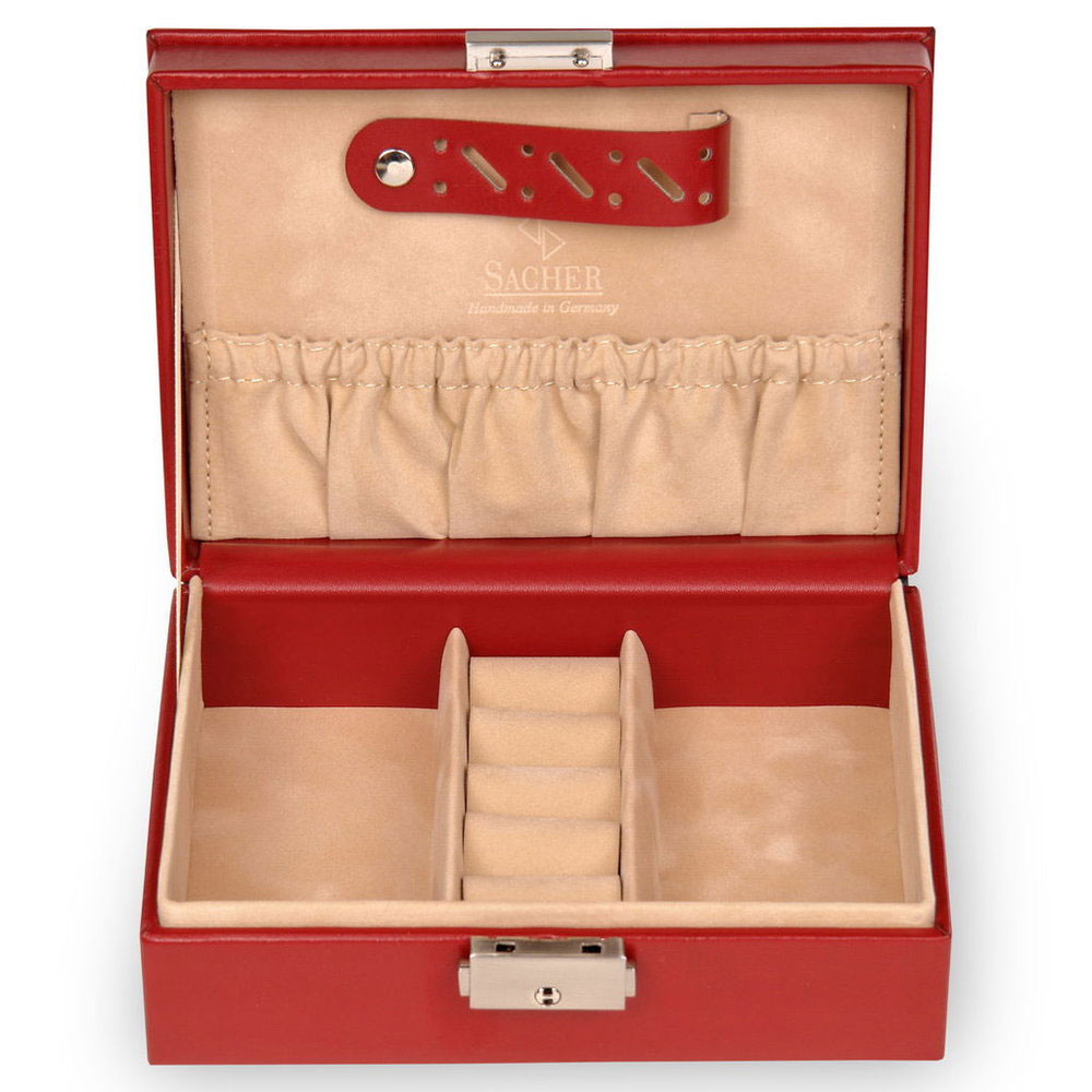 Шкатулка для хранения украшений из искуственной кожи красного цвета.