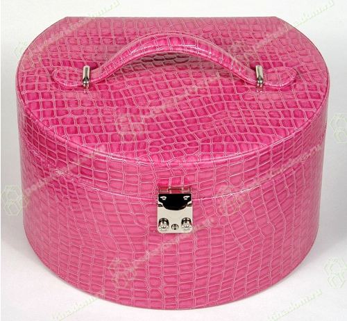 Глубокая шкатулка круглой формы с сепаратными верхними ящичками и дорожным етуи.