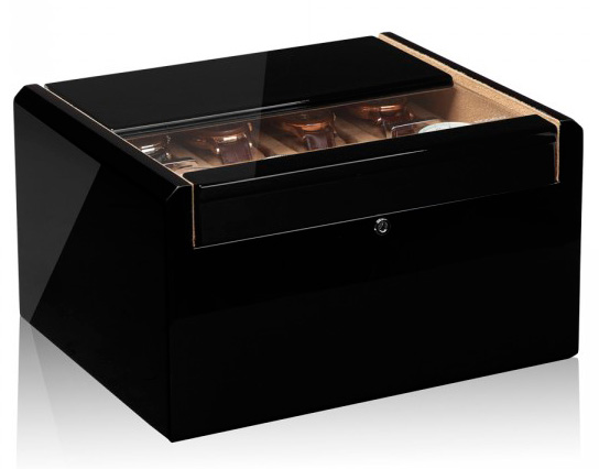 Отличное сочетание дизайна, качества исполнения и функциональных возможностей. Шкатулка из высококачественной древесины покрытой 10-ти слоями лака. Ударопрочное стекло. Замок.