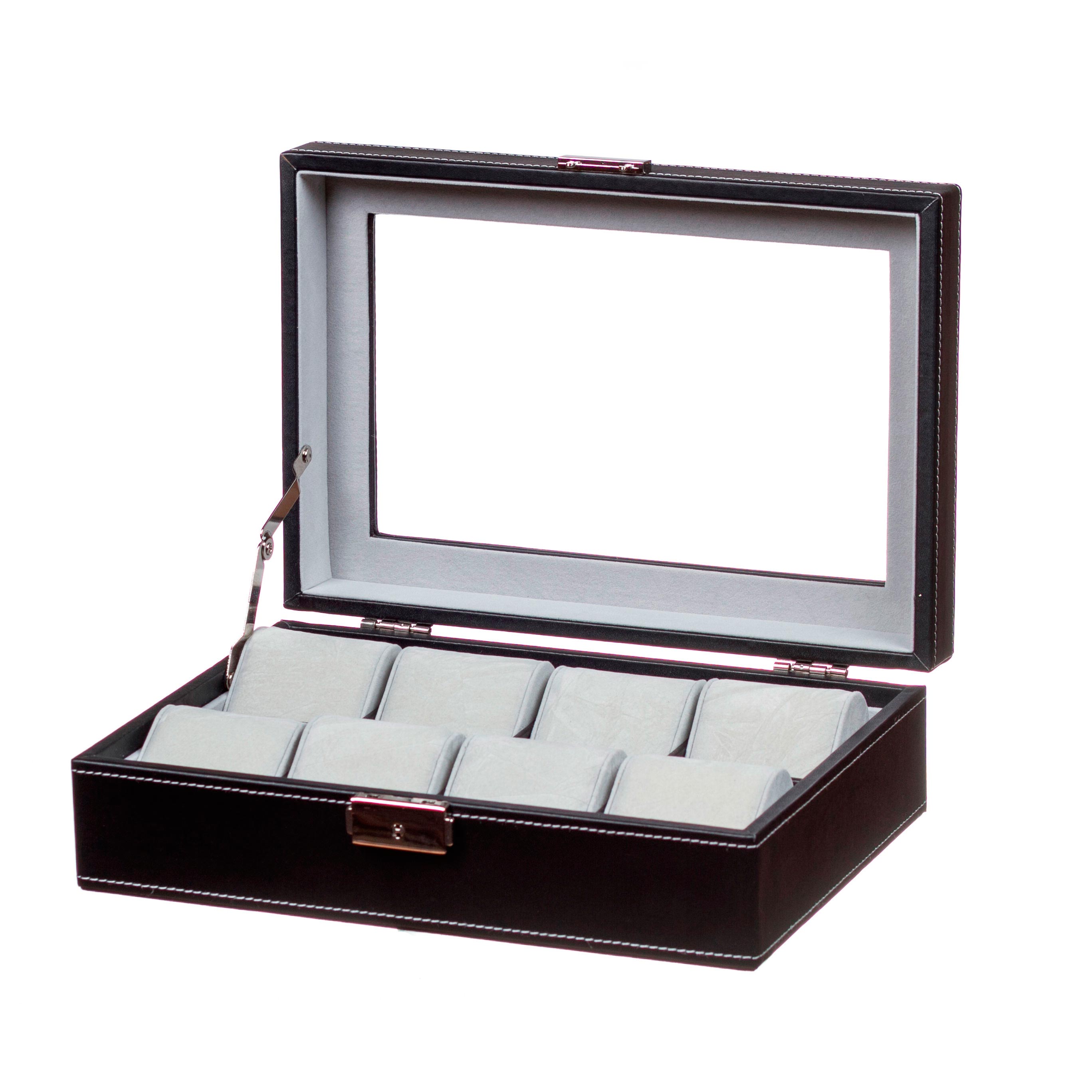 Шкатулка для 8-ми наручных часов со стеклянной крышкой.