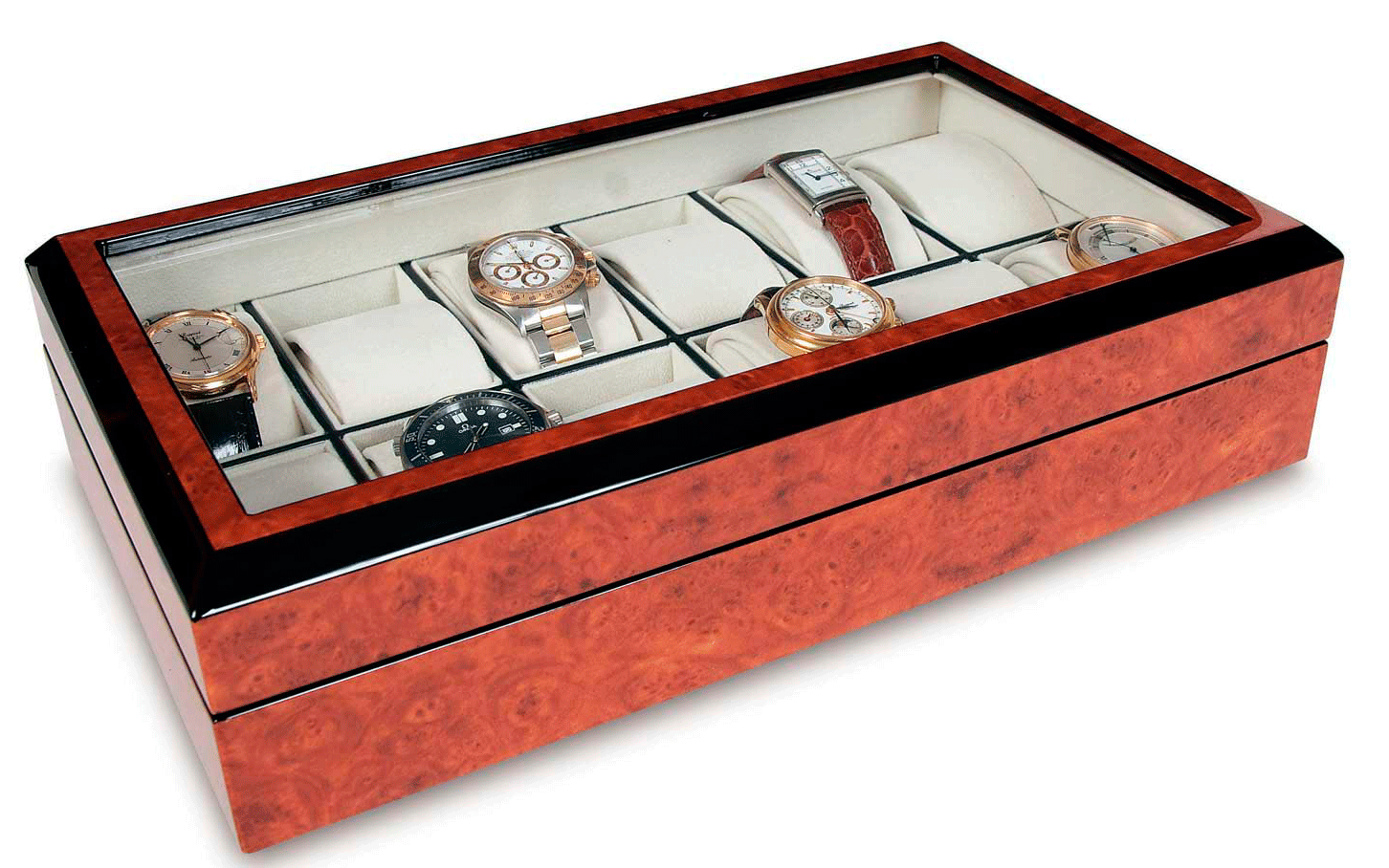 Шкатулка для хранения 12 часов с отделкой "Корень ореха""