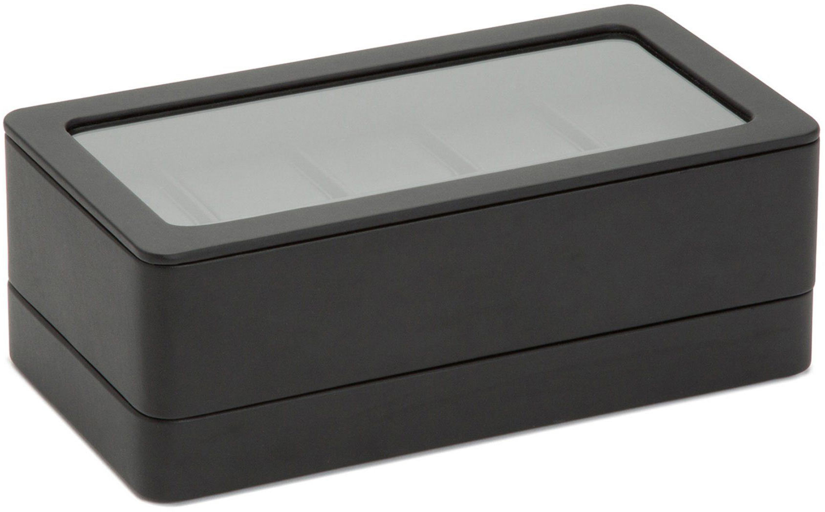 Футляр для хранения и зарядки часов со стеклянной крышкой. Внутри: 5 отделений для классических часов, отсек с зарядной станцией для Apple Watch и 6 отделений для хранения ремешков. Магнитный кабель для зарядки в комплект не входит.