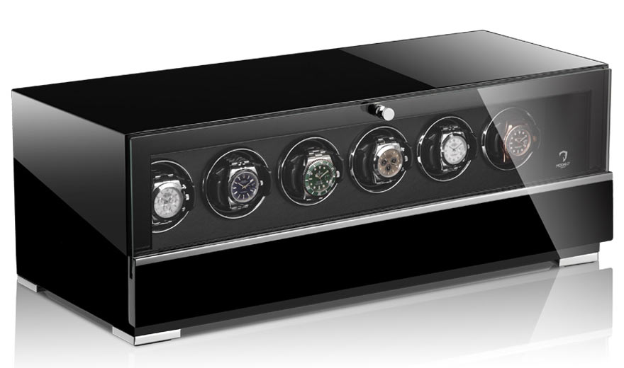 Шкатулка для 6 наручных часов с автоматическим заводом в классическом в деревянном корпусе.
