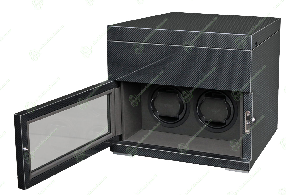Шкатулка для завода двух наручных часов и с отделением для хранения 3 часов. Отделка "Carbon"