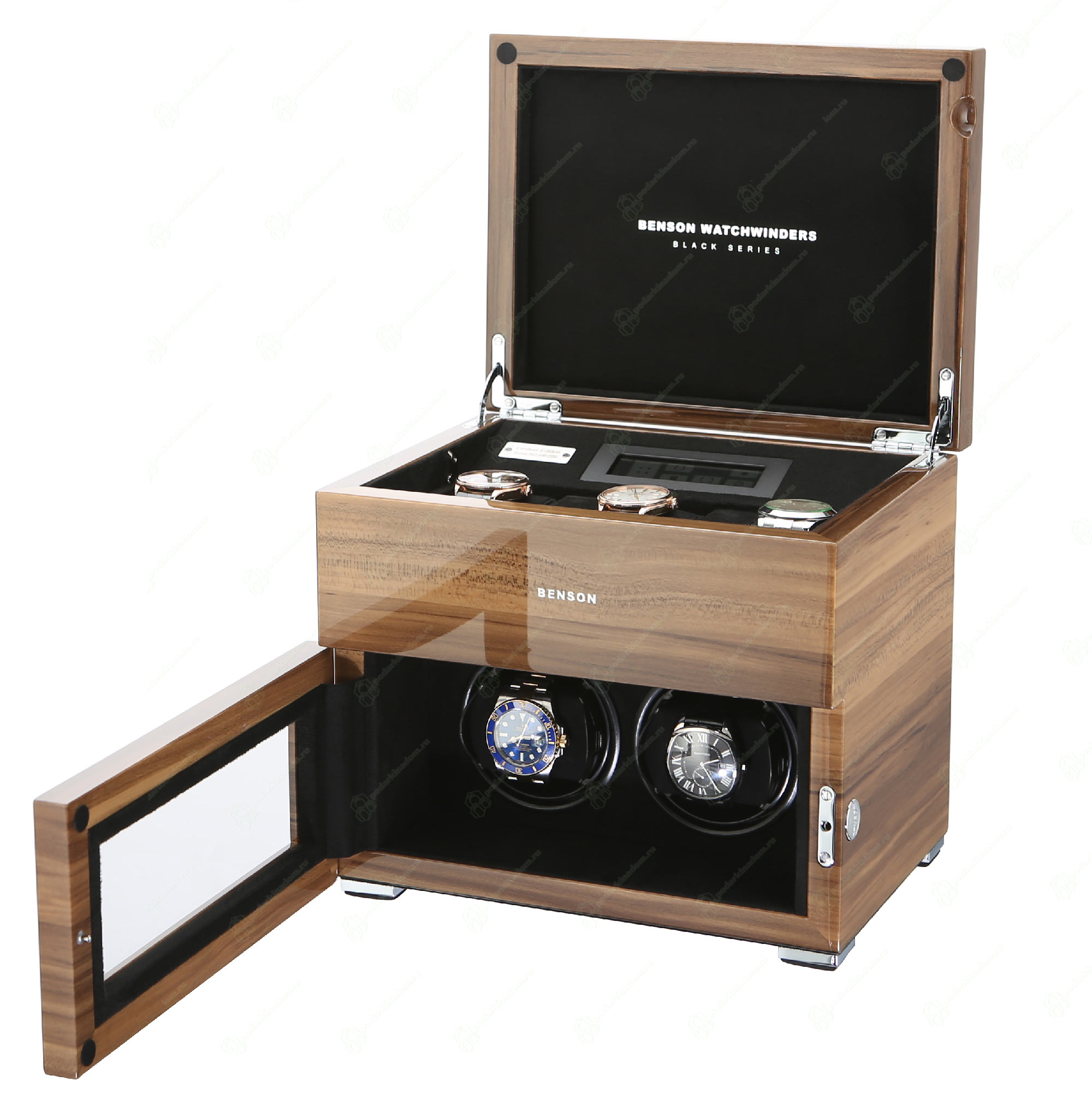 Питание от сети 220В. Каждый мотор имеет независимое управление. Настройка с помощью тач панели. Благодаря этому возможно настроить индивидуальную программу завода для каждых часов в отдельности. Светодиодная подсветка внутреннего пространства. Удобные подпружиненные фиксаторы надежно фиксирую часы, максимальная ширина часов по оси заводной головки 60 мм. Тихие моторы японского производства.
