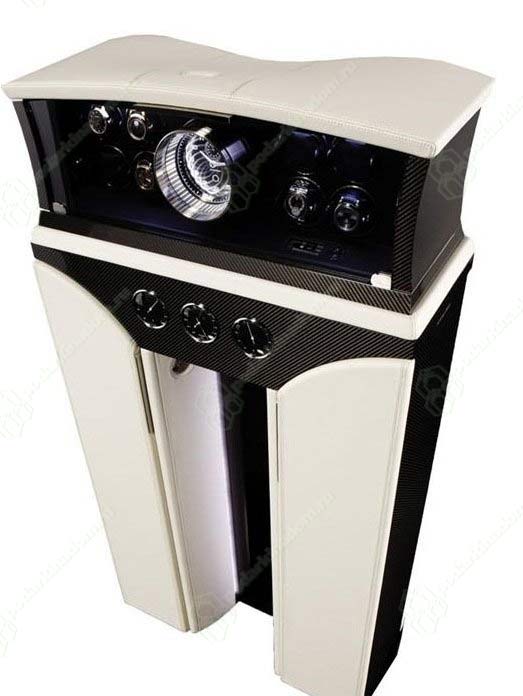 Шкаф для механических часов с автоподзаводом. Часы с турбийоном, акустическая система HI-FI, хьюмидор для хранения сигар с увлажнителем, великолепная система освещения и превосходный функционал.