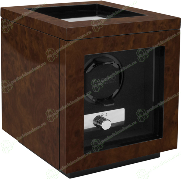 Шкатулка для одних часов с автоподзаводом. Cube one Burlwood. Корпус из натурального дерева. Малошумный мотор. Работа только от сети.