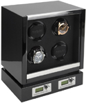 Шкатулка Kadloo для 4 механических часов с автоподзаводом. Независимые ячейки для часов, удобное управление, электронный дисплей, все это в корпусе из дерева покрытого черным рояльным лаком. Уникальная модель, отличный выбор для Ваших часов