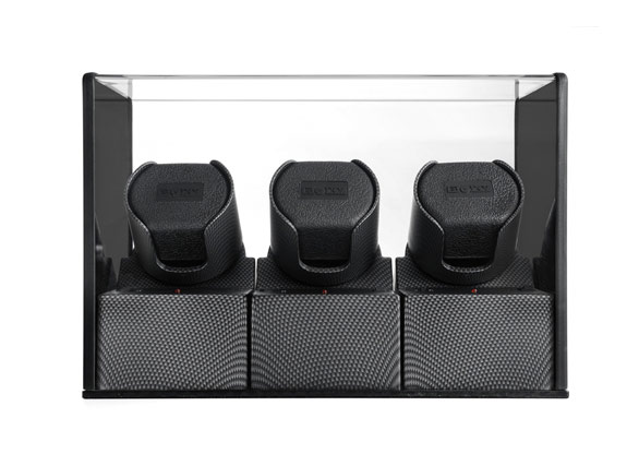 Шкатулка с автоподзаводом для трех часов, пластик темно-серого цвета, работает от сети и на батарейках