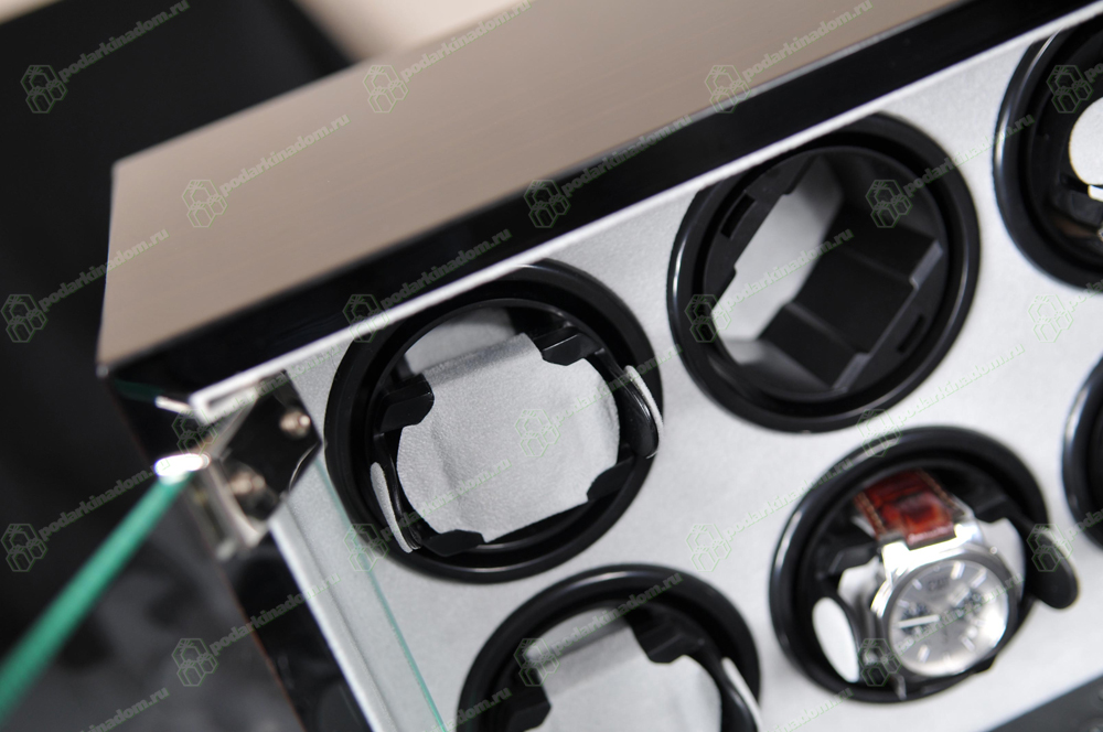 Шкатулка с подзаводом 6ти ручных часов, покрытая лаком и велюровой отделкой внутри,работает только от сети
