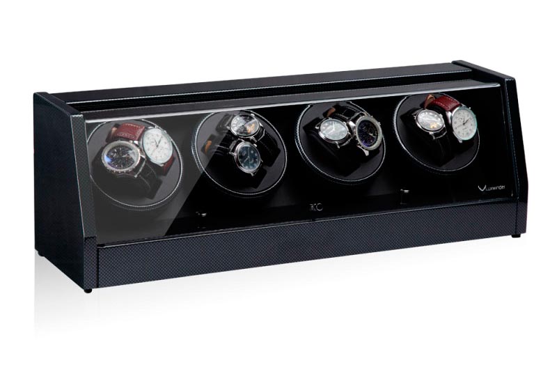 Шкатулка для часов с автоподзаводом для 8-ми наручных часов, выполнена из натурального дерева. Отделка: карбон
