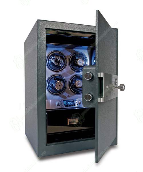 Сейф для четырех часов с автозаводом серии COMMANDER. Эксклюзивный дизайн, превосходная внутренняя отделка, LCD дисплей и новейшая система подзавода с индивидуальной регулировкой каждого из держателей, делает эту модель произведением искуства.