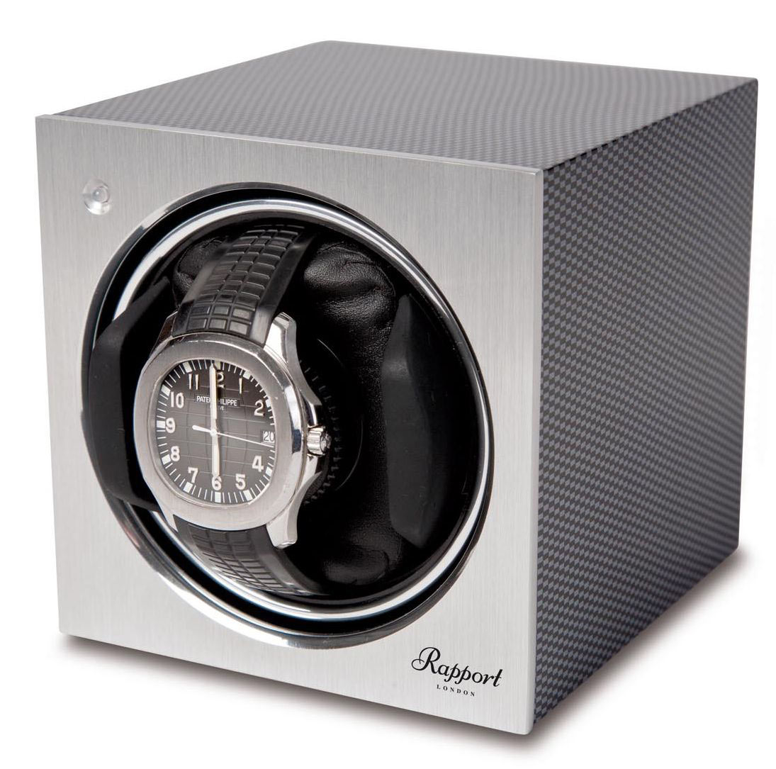 Шкатулка Rapport "Tetra" для завода одних наручных часов. Отделка: карбон и алюминий