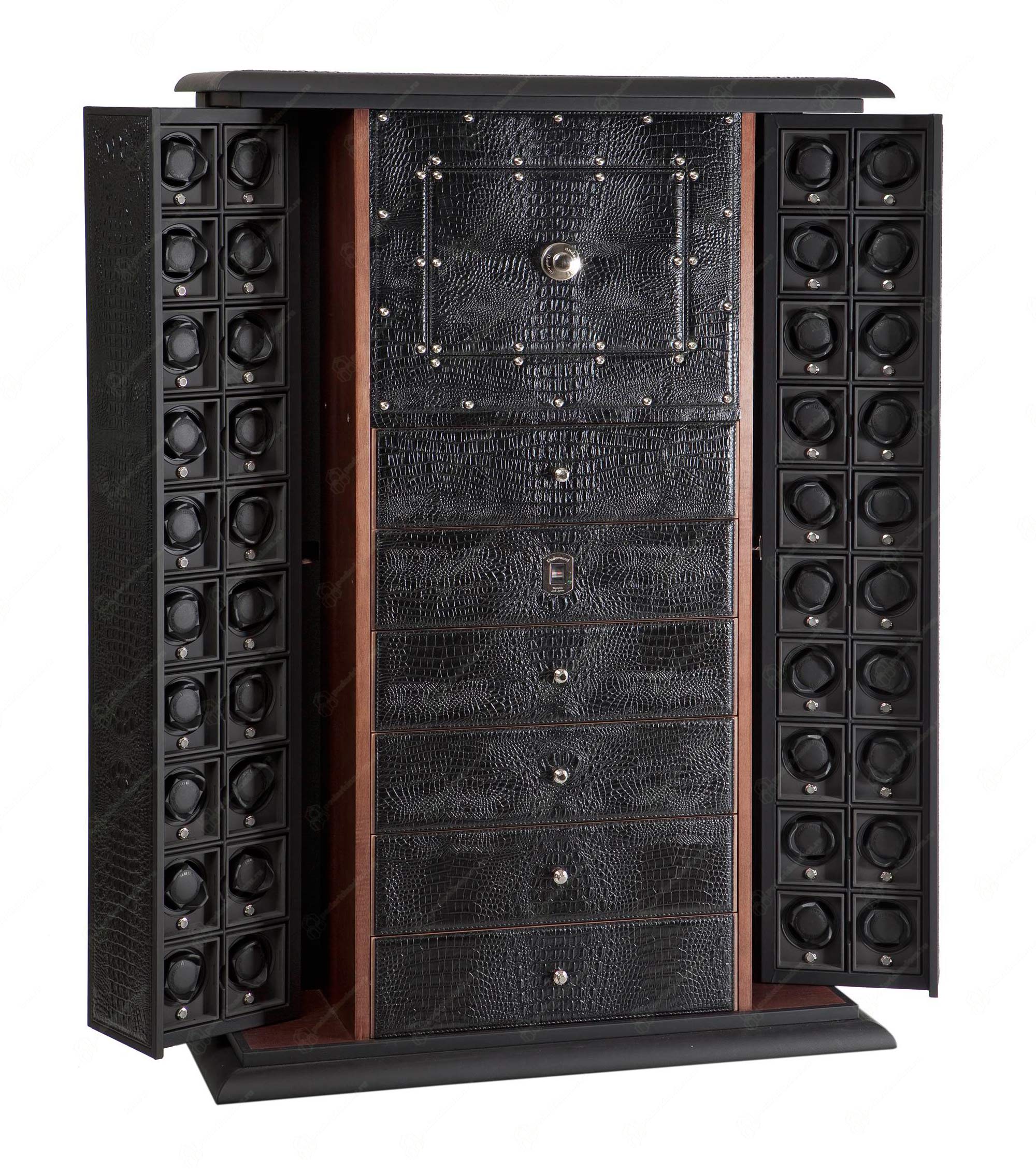 Шкаф для автопозавода сорока часов и ящиками для хранения драгоценностей.