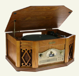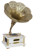 Стерео система - ретро-проигрыватель GRAMOPHONE-II. Воспроизведение: Винил, CD, Радио (AM/FM), аудио касеты.