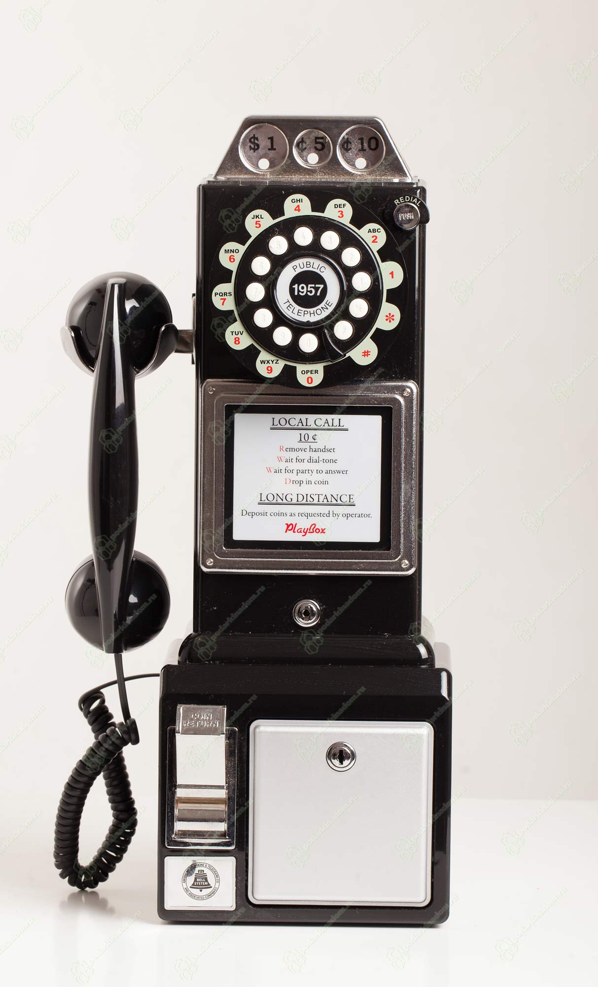 Ретро телефон в стиле 50-х годов с современным набором функций. Такие телефоны устанавливали в таксофонных будках США в середине прошлого столетия.
