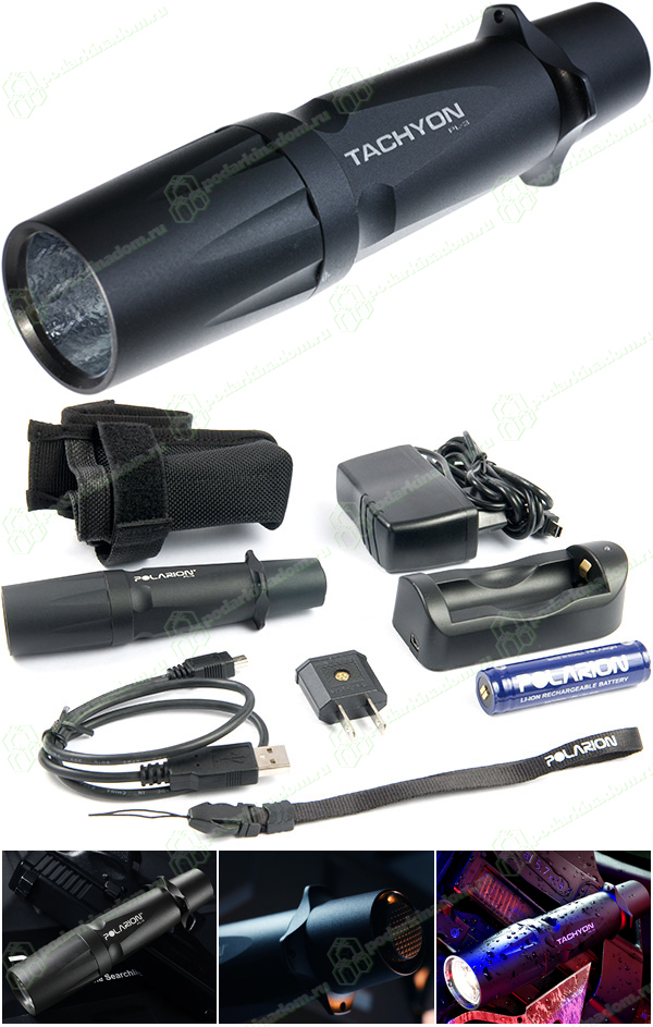Комплектация: фонарь, аккумулятор Polarion 2200мАч, зарядное устройство, адаптер для зарядки от USB.