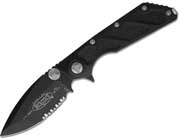 Складной нож Microtech 153-1 с рукоятью выполненной из авиационного алюминия с ручным открытием клинка, длинна лезвия 9,53 см.