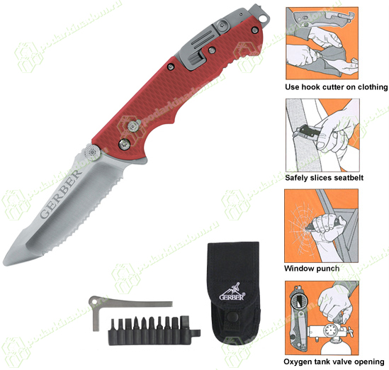 Одной из наиболее инновационных особенностей ножа является специальный вырез в рукоятке, предназначенный для использования его в качестве ключа для открытия клапана баллона с кислородом, что особенно оценят опытные пожарные и фельдшеры.