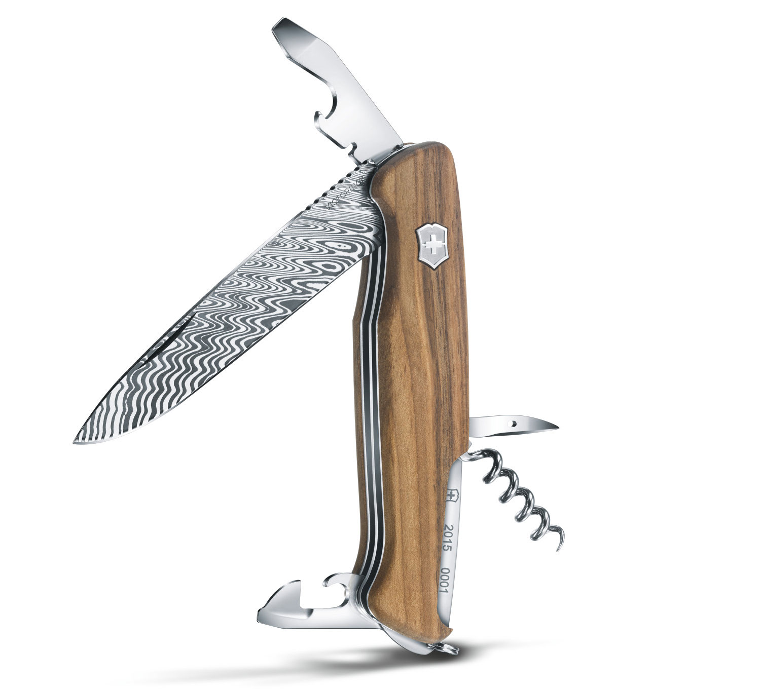 Эксклюзивный карманный нож Викторинокс из серией Damast Limited Edition Rangerwood. Ограниченный тираж 5000 штук, ореховая рукоять и клинок из дамасской стали, по всей видимости объясняют стоимость данного экземпляра
