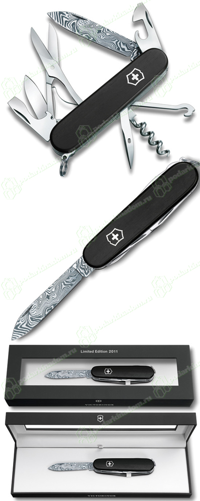 Victorinox Damascus Climber Limited Edition 2011 имеет следующие инструменты: 1. Большое лезвие изготовленное из высококачественной дамасской стали 60 HRc, 2. Малое лезвие, 3. Штопор, 4. Открывалка для консервов с.., 5. - мини отвёрткой, 6. Открывалка для бутылок с.., 7. - отвёрткой, 8. - инструментом для снятия изоляции, 9. Шило, 10. Кольцо для ключей, 11. Пинцет, 12. Зубочистка, 13. Ножницы, 14. Мульти целевой крюк.