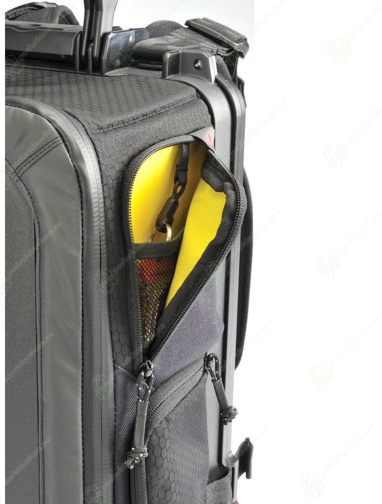 Уплотнительное кольцо обеспечивает сохранение водонепроницаемых свойств в течение 30 минут на глубине до 1 метра* (*Только для кейса. Рюкзак не является