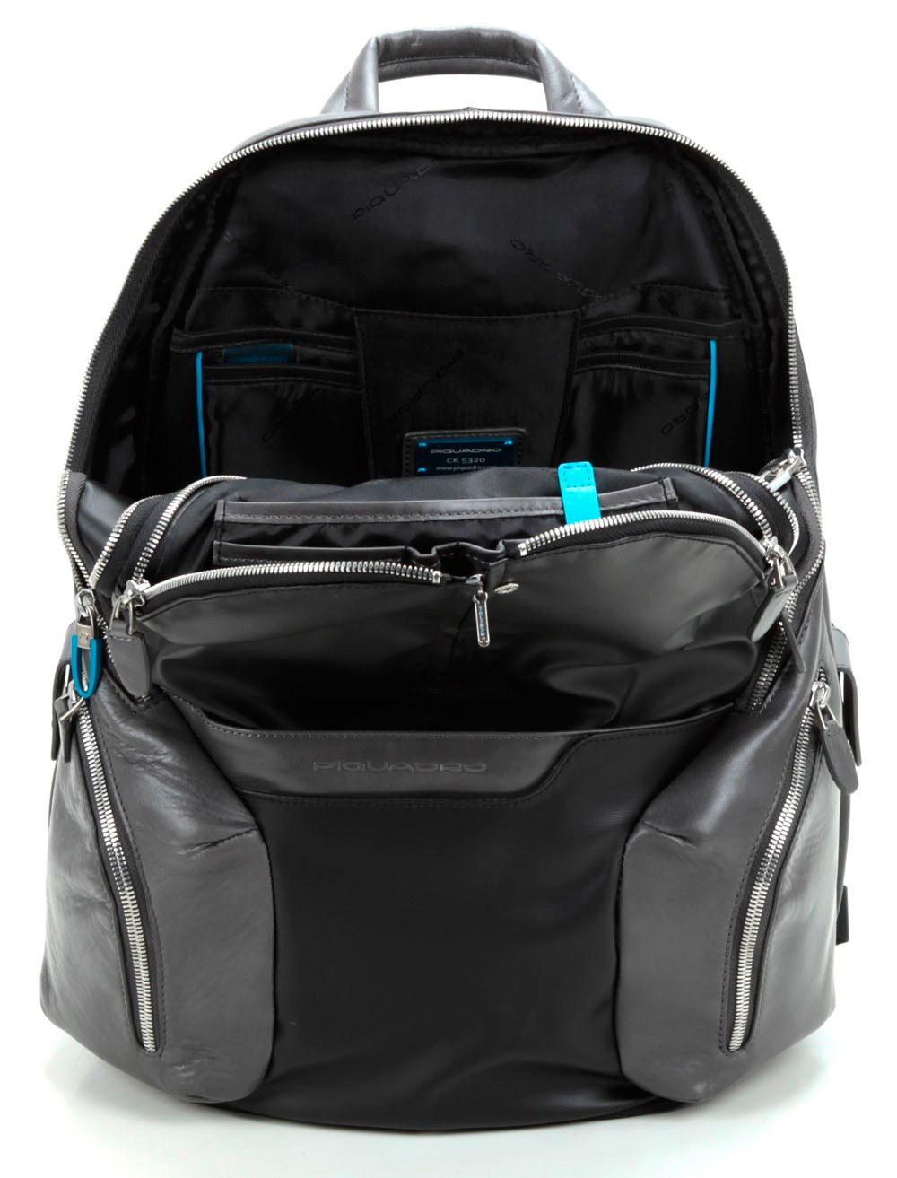 Внутри: 2 основных отделения закрываются на молнии, в одном из которых держатель для ключей, отделение на молнии. Возможность разместить ноутбук до 13 дюймов. Снаружи на передней стенке карман для зонта, отделение на молнии, в котором кармашки для кредитных карт, держатель для пишущих принадлежностей и карман для мобильного телефона, по бокам 2 отделения на молнии, карман для бутылки, снизу отделение для шлема, на задней стенке маленький карман с чехлом закрывается на молнию. 2 регулируемых плечевых ремня, на одном из которых отделение для MP3-плеера с отверстием для наушников. Система крепления к ручке багажной сумки. Возможность увеличения объема.