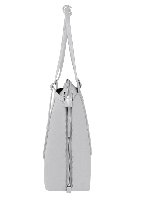 Универсальная сумка для ноутбука серебристого цвета из нейлона, ручки из кожи, внутренние карманы-замш.