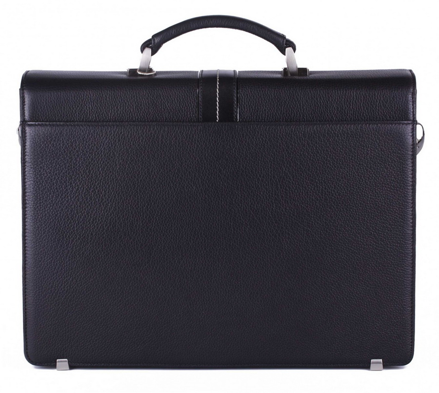 Мужской портфель Vasheron с кодовым замком выполнен из натуральной телячей кожи черного цвета.