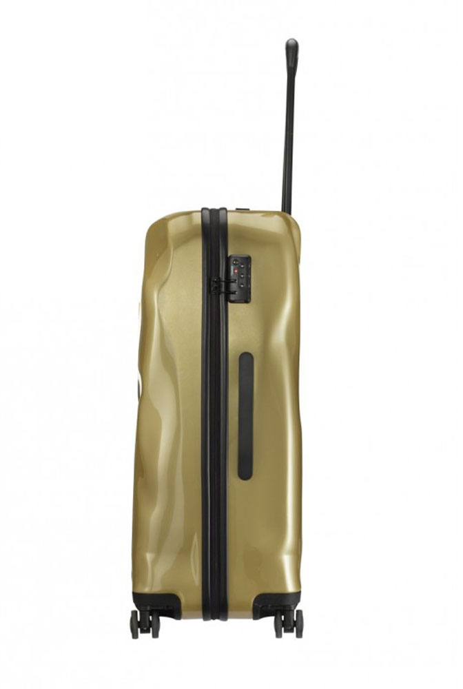 Корпус чемодана выполнен из легкого и высокопрочного поликарбоната, четыре бесшумных колеса позволяют вращать чемодан под углом 360 градусов в любом направлении и транспортировать его в наклонном или вертикальном положении. Кармашек с молнией для мелочей, разделительная сетка и фиксирующие ремешки разделяют одежду и сводят к минимуму перемещение содержимого в чемодане.