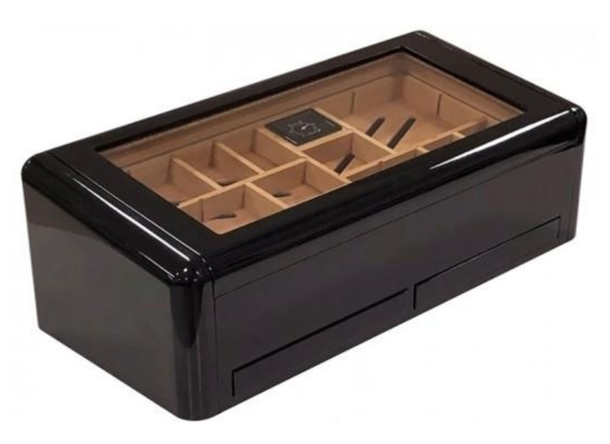 Хьюмидор для хранения 150 сигар, с выдвижными ящичками для сигарных аксессуаров.