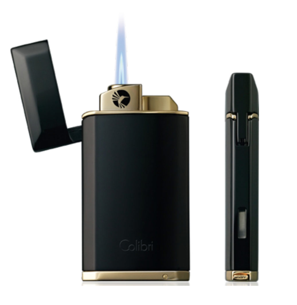 Классическая сигарная турбозажигалка QTR-497012 оборудована пробойником и окошком для контроля уровня газа.