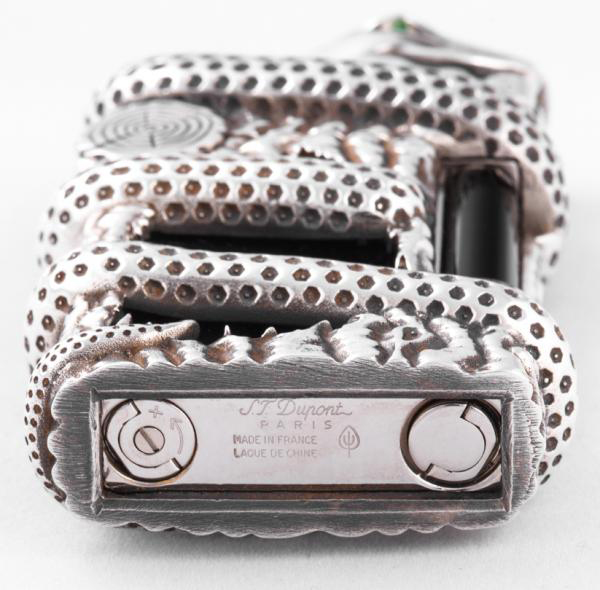Кремнивая зажигалка в виде змеи выполнена из серебра, с ручной гравировкай.